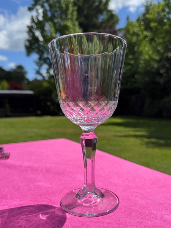 Het wijnglas deluxe is een stijlvol en feestelijk wijnglas. Er zit een reliƫf in verwerkt die zorgt voor een extra element op tafel. Dit glas is te combineren met wit bord en blauw/groen bord deluxe.
